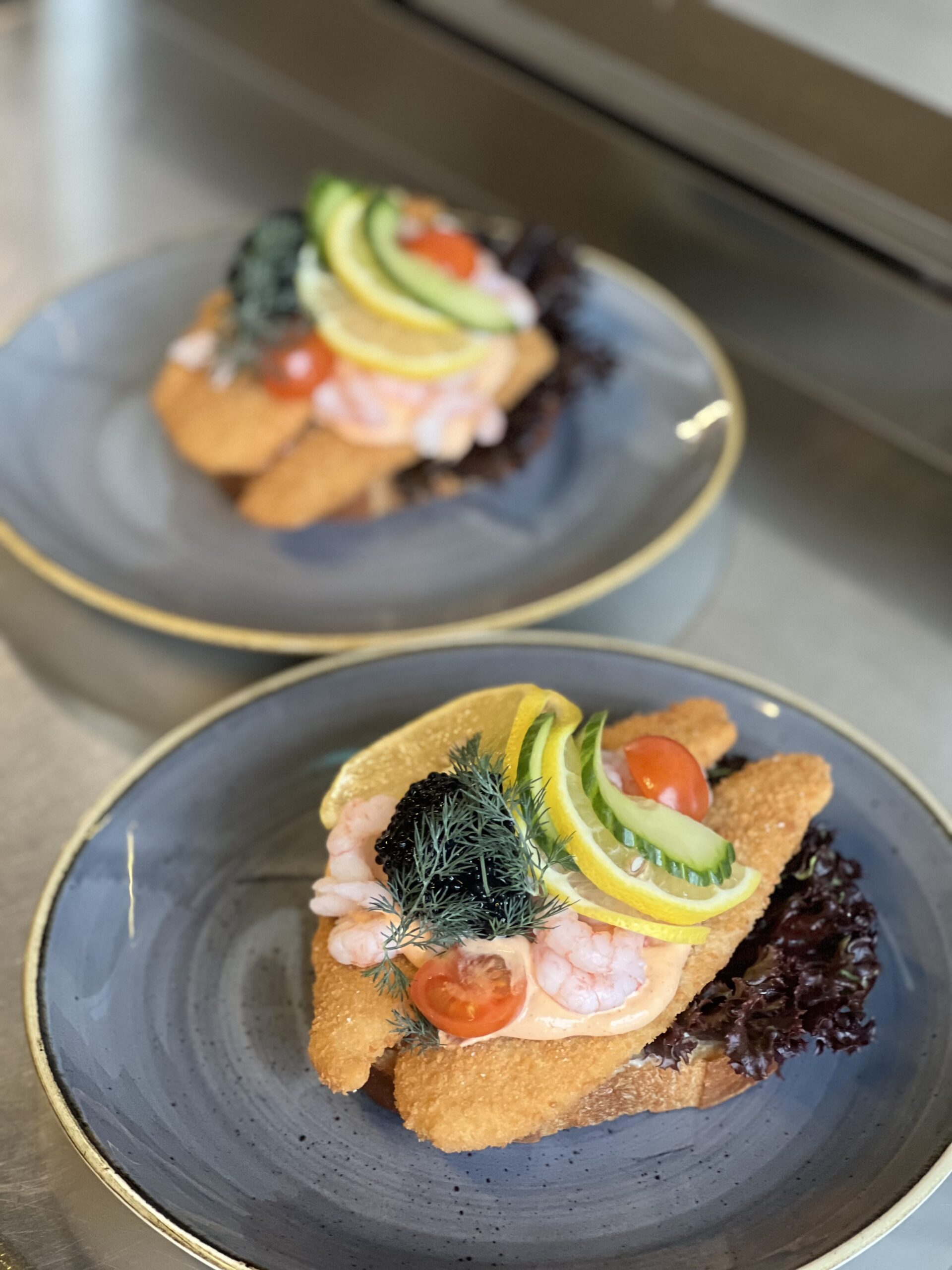 Smurt på formbrød og to fisk